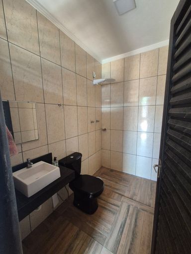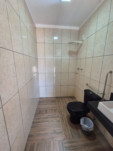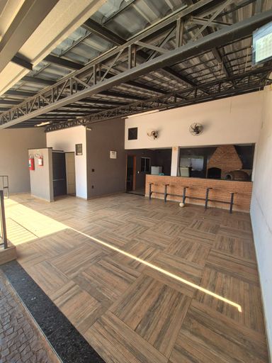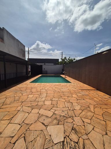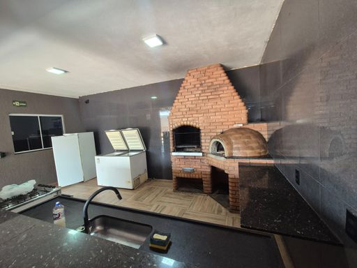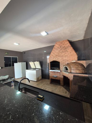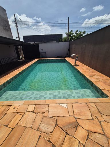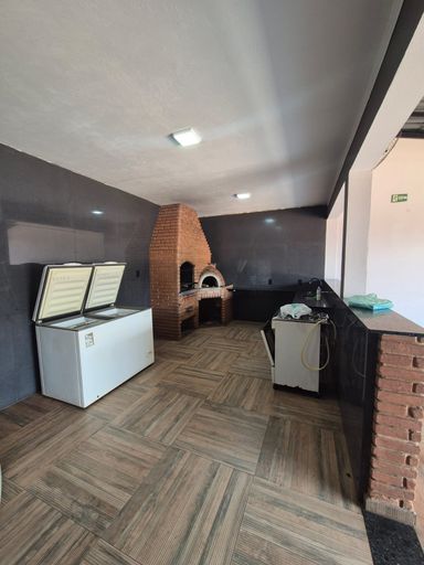 1 quarto, 2 banheiros, churrasqueira e piscina