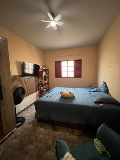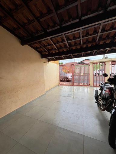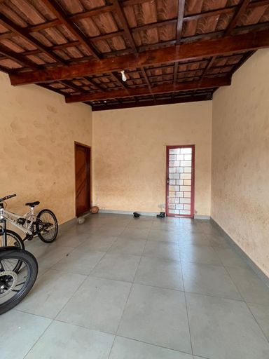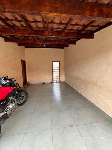 Casa com garagem ampla, 2 quartos, sala, cozinha e 1 banheiro.